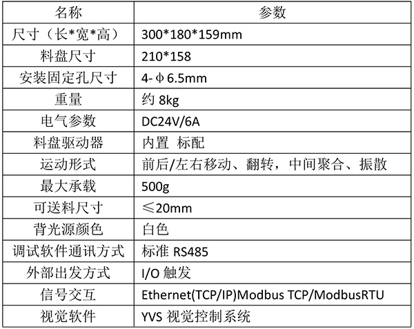 YL-F200A柔性振動(dòng)盤參數(shù):